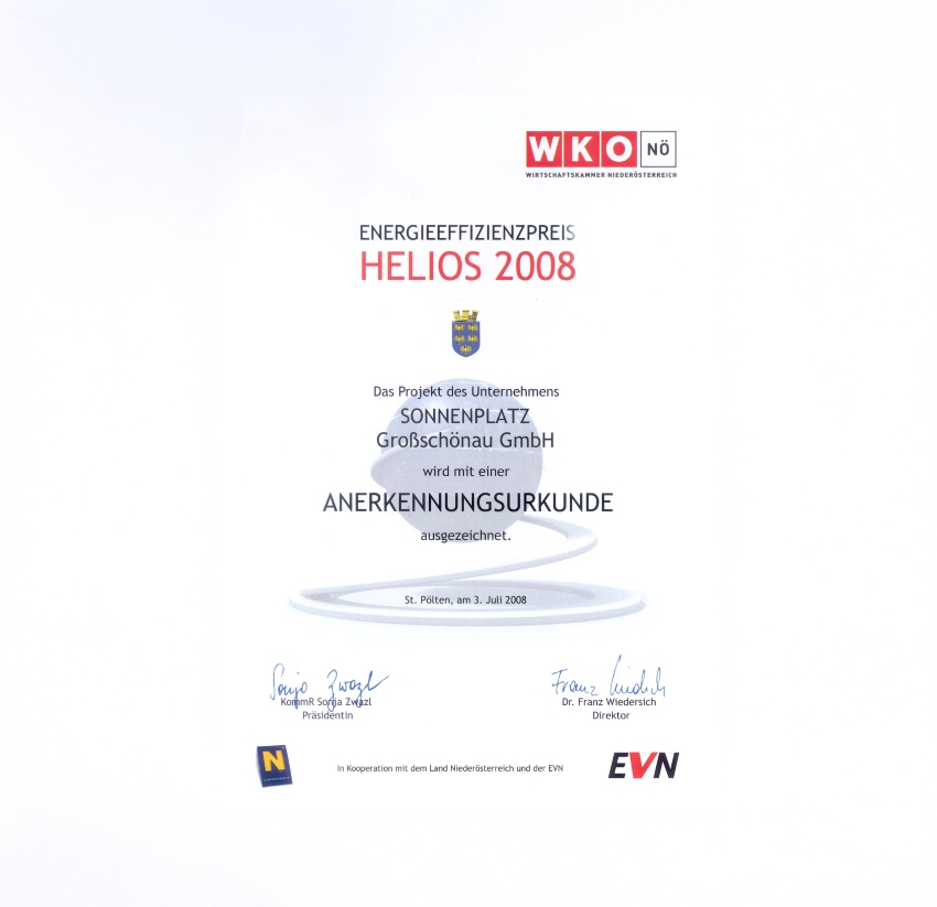 Nominierung Energy Globe Award 2014 und Anerkennungspreis Energy Globe Award NÖ 2007